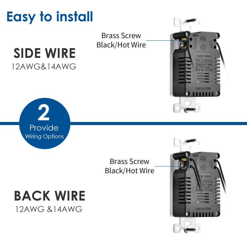 2. Easily fits in any standard wall boxes and is compatible with all standard wall plates. 3. Wall plate and screws included. (Please follow the included installation instructions for details)