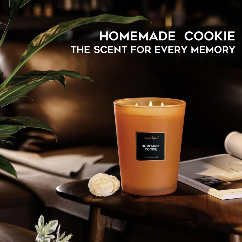 HomeLights Scented Candles, Candles for Home Scented, Large Jar Aromatherapy Candles, Natural Soy Wax, 130 Hours Long Burning Candles Gift, Homemade Cookie