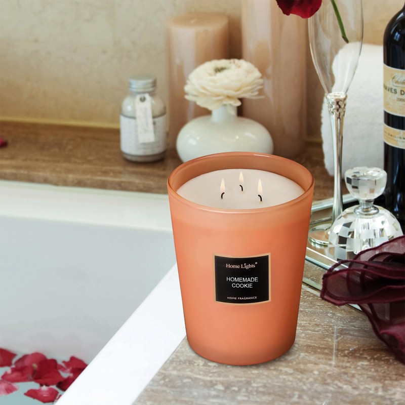 - Large Jar with 3 Wicks -HomeLights scented candles are made with three 100% natural cotton core wicks. The specially designed wick and wax formulation promote a consistent flame and minimal soot. Indulge in the luxurious aroma by lighting just one or all three wicks, allowing you to customize the intensity of the scent to suit your preference.