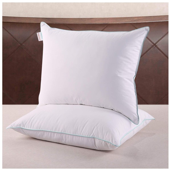 - ''' 100% Hypoallergenic Cotton Cover and Feather Down Filled Pillows#||# Made in USA or Imported#||# NATURAL & HYPOALLERGENIC PILLOW. The down pillows standard are OEKO-TEX Standard 100 certificated, which is tested for harmful substances. The inner chamber of the down feather pillows is filled with 95% feather and 5% down for soft and support, the outer chamber of the bed pillows standard is filled with Down-Like mircofiber to avoid prick feel of feathers. The shell of the feather pillow standard is 100% cotton, double layered to keep downproof, allergy resistant#||# COMFORTABLE & SUPPORTIVE. The standard feather pillows for sleeping 2 pack with perfect combination of soft and support. The real feather pillow is an ideal choice as side sleeper pillow and back sleeper pillow#||# GREAT VALUE & GIFT CHIOICE. Each order include 2 pack sleep pillow. There are three sizes available, standrad pillows 20x26 2 pack, queen pillows 20x30 2 pack, king size pillows 20x36 2 pack. The medium firm pillows down feather filled is an ideal gift choice for your family and friends on Father's Day, Mother's Day, Birthday, Christmas, New Year, Housewarming or Back to School#||# EASY CARE. Machine wash and dry for the 20 26 down-filled pillows. If the soft feather pillows standard get a bit flat after several months sleeping, just pop one at a time into the clothes dryer for about 3 minutes to re-fluff them#||# SATISFACTION GUARANTEE. We are confident you will love our down feather pillow. If your sleeping experience with this fluffy pillow 26x20 pillow is not absolutely exceptional, simply contact us for return'''