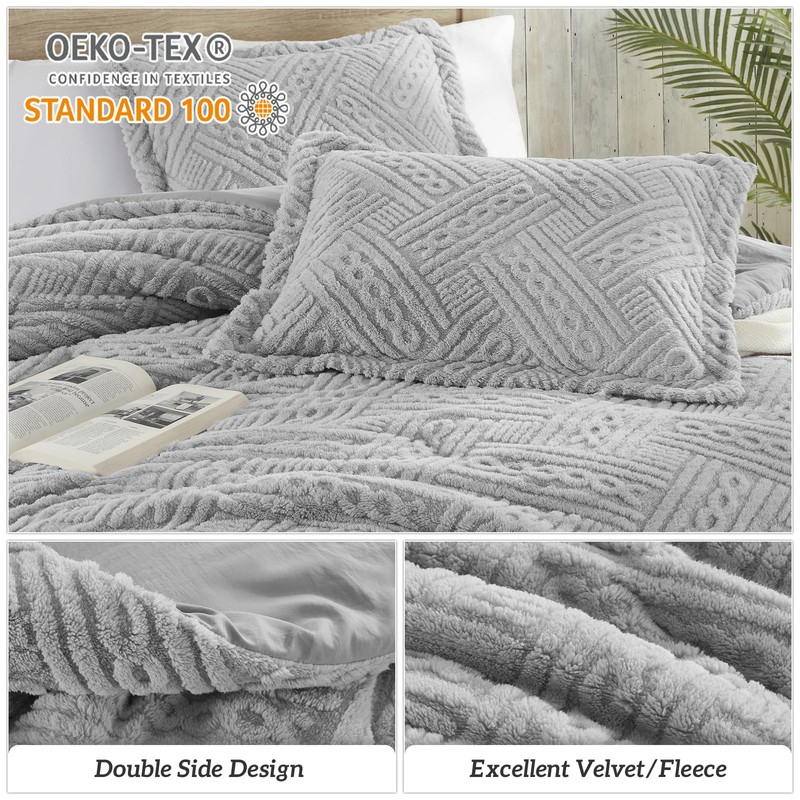 - 【Great Ideal Choice】Our fuzzy fleece comforter set is manufactured in an OEKO-TEX Standard 100 factory, which providing sleepers with assured quality. This soft comforter king size bed set is an ideal choice for your family and friends on Father's Day, Mother's Day, Birthday, Christmas, New Year, Housewarming and Back to School. A thoughtful choice suitable for any occasion.