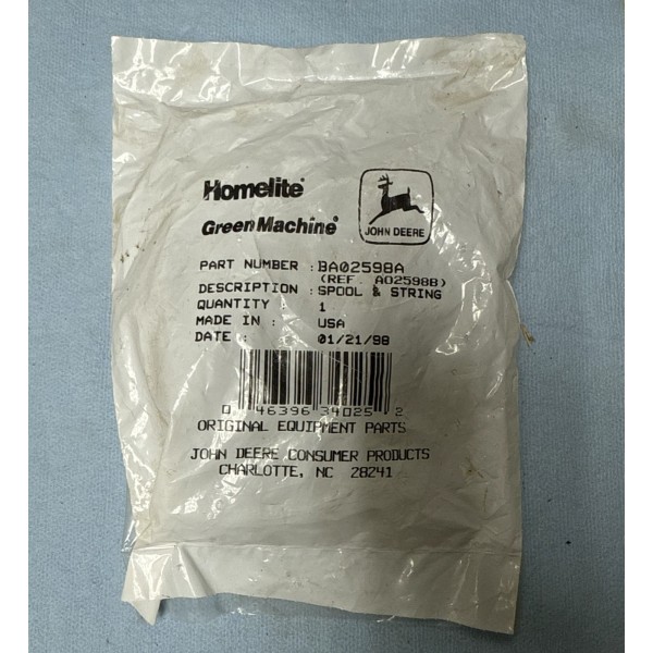 Homelite, John Deere, Green Machine New Homelite John Deere Green Machine Spool & String. Part BA02598A/B