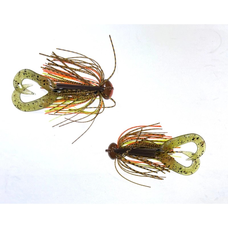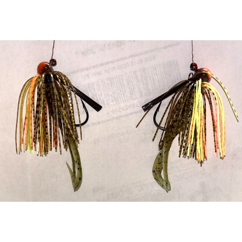 First, each of your jigs will come in a 3" x 5" plastic bag to keep them fresh until you put them in the water. The hooks are 4/0 Mustad Ultra Point hooks. You are going to get 5 3/8 oz jigs and 5 1/2 oz jigs for a total of 10 jigs altogether with the trailers already glued on and ready to put into the water. The 3/8 should come in handy when using them in shallow water when the 1/2 will go down into the cracks much faster. They should bounce along much easier. These colors should work very well in some very stained water and the different weights, 3/8 for shallow and the 1/2 for deeper water. Remember this, fish move up shallower when the water color gets dirtier and the 3/8 oz should really do the trick when this happens. Also I have these colors available in finesse jigs also if you would rather have them with more of a bullet head instead of the Football. If so just check out at my other items Also included free will be an article about jig fishing that I wrote in early 2018 telling exactly how I caught 7749 bass fishing public lakes around Kansas City, Mo between the years 2015-2017, and I mean I left nothing out telling things that the pros are not telling us or should I say, most of them. Major secret for them I guess and the things I wrote about also work for Spinnerbaits, Vibrating Jigs, Frogs and trailers hooks and can even be used on treble hooks I was learning how to jig fish and found out that jigs are so deadly it is almost unbelievable once we learn how to use them. The article was written about mainly the Bluegill Jig as it was the one I used most of the time through those years (2015-2017) and should I say still use it today most of the time. Anyway, you will have some new toys to play with and enough to get you by if you lose some. Also 1.00 shipping on any other listing you purchase today from all my listings. and I make a bunch of other stuff also. Click "See other items" at the right side of this listing and it will show them all to you. I make WEEDLESS SPINNERBAITS, Weedless Vibrating Jigs, and Weedless Bladed Swim Jigs and a whole bunch of different colored Bass Jigs. Thanks for looking and good fishing to you.