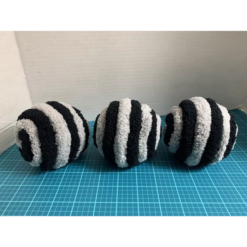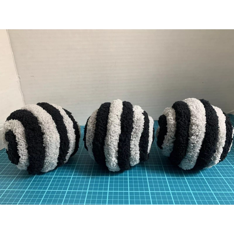 Homemade Lot 3 Yarn Covered Foam Balls Blk Grey Decor Wreath Tray Table Wall Display New