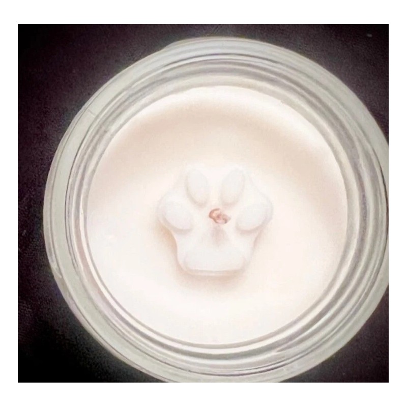 Homemade Soy Wax Candle. The jar is clear glass and the candle is white. 1 wick inside with soy wax embellishments.