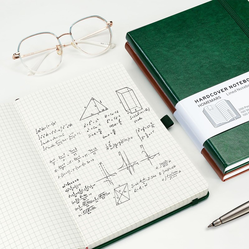 HOMEMARS Notebook, Notebook, Chequered, Journal Book, Notepad A5, Notepad, Notebooks A5, 100 GSM, 200 Pages, Pack of 2, Notebook Chequered, Leather Hardcover, Brown Green