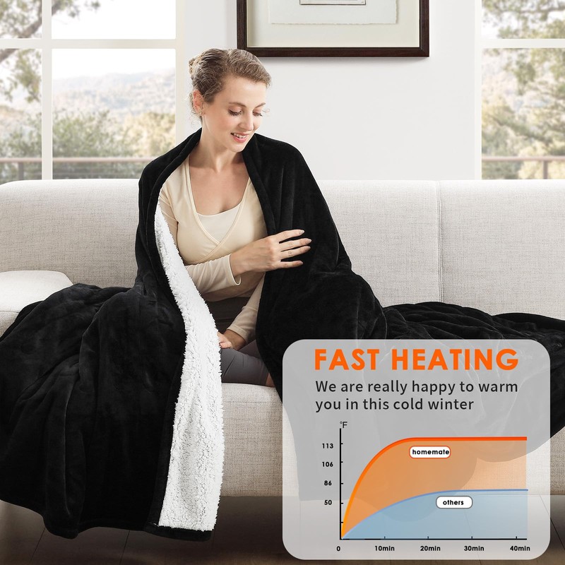 Q: What are the features of Homemate heated blanket compared to other heated blankets?