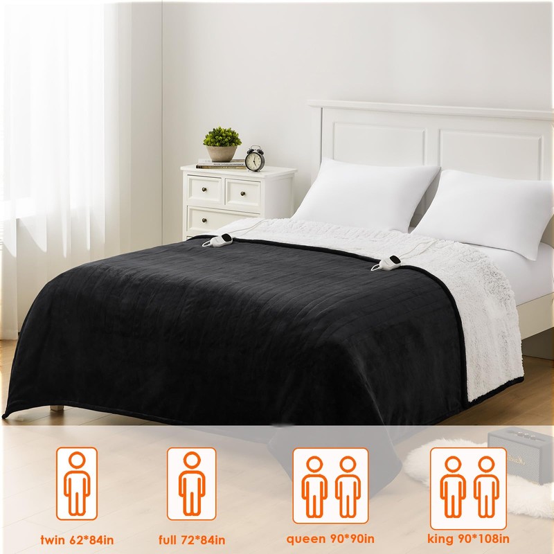 • ★PREMIUM MATERIAL: 220gsm Double-sided flannel.The fabric is very soft,thicker than normal blankets,and warmer than normal blankets even without electricity.The fabric is durable and does not shed.The diameter of the heating wire is 2.2 mm,and the existence of the heating wire is hardly felt during use,which is more comfortable.