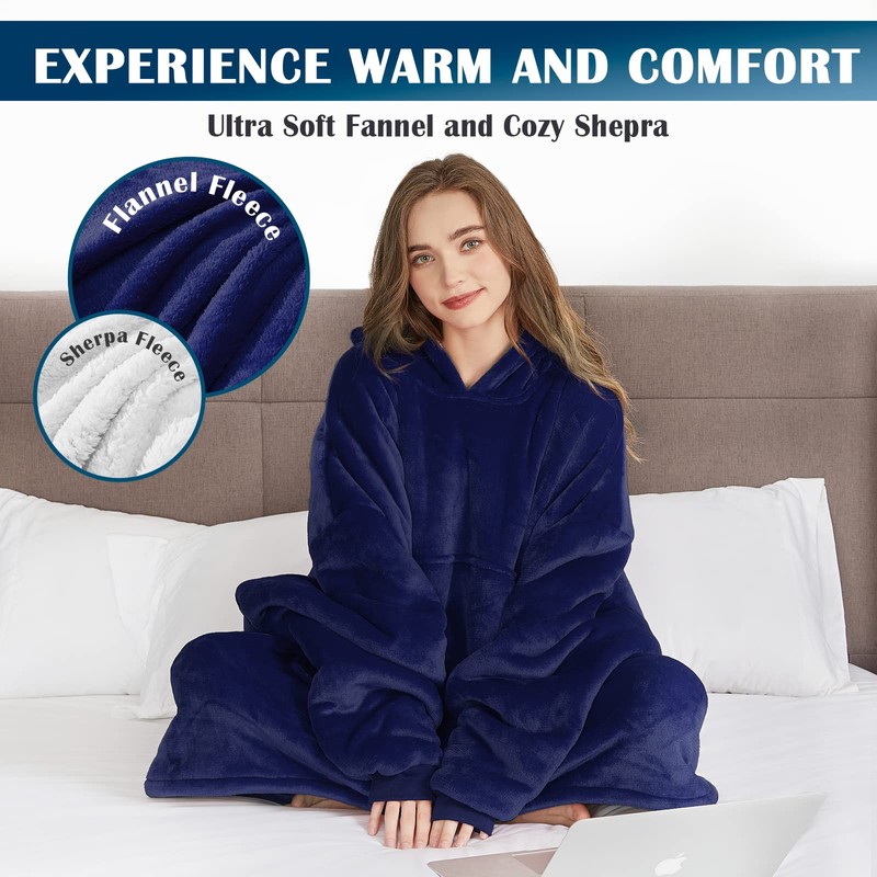- One Size Fits All: The oversized blanket hoodie fits adults, women, men, teens, it fits most people with an oversized hood, oversized sleeves and a huge hood that covers the entire body; Package includes 1 x sherpa hoodie blanket, 1 x battery pack, 1 x battery charging cable