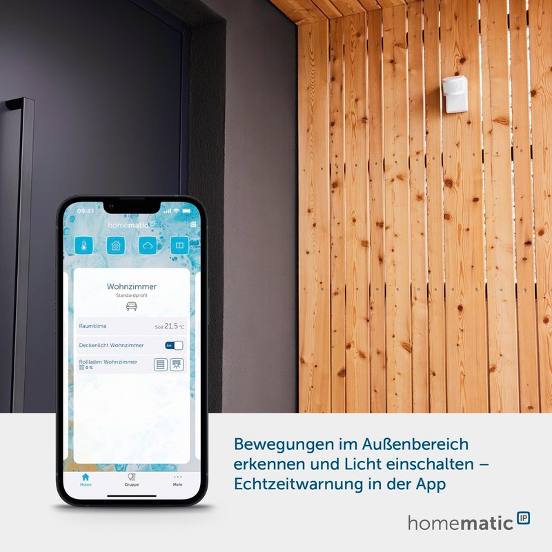 - Integrated twilight sensor reports the brightness value of the detected outdoor area to the Homematic IP app.