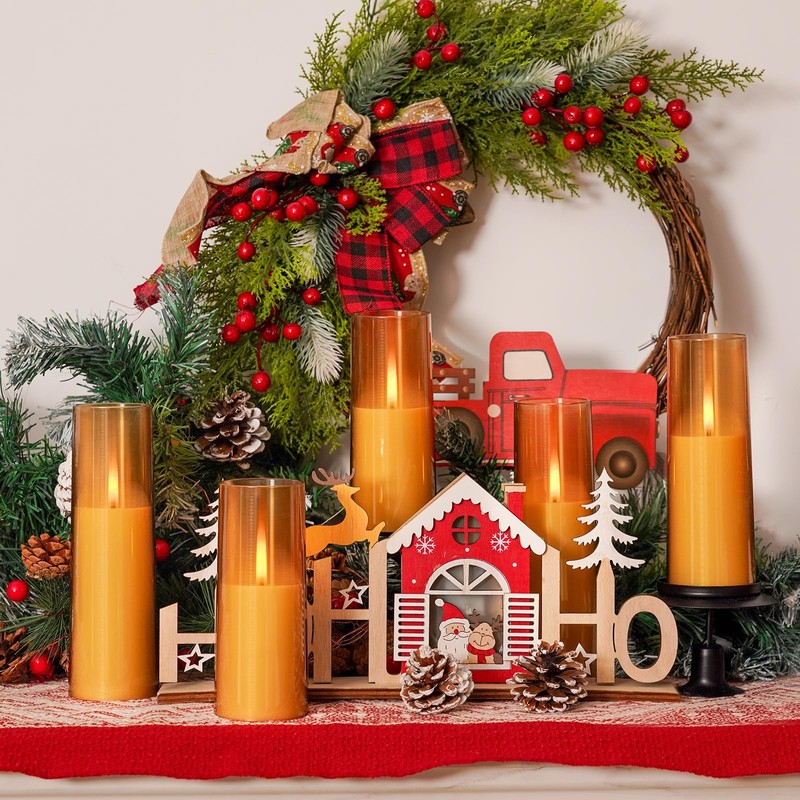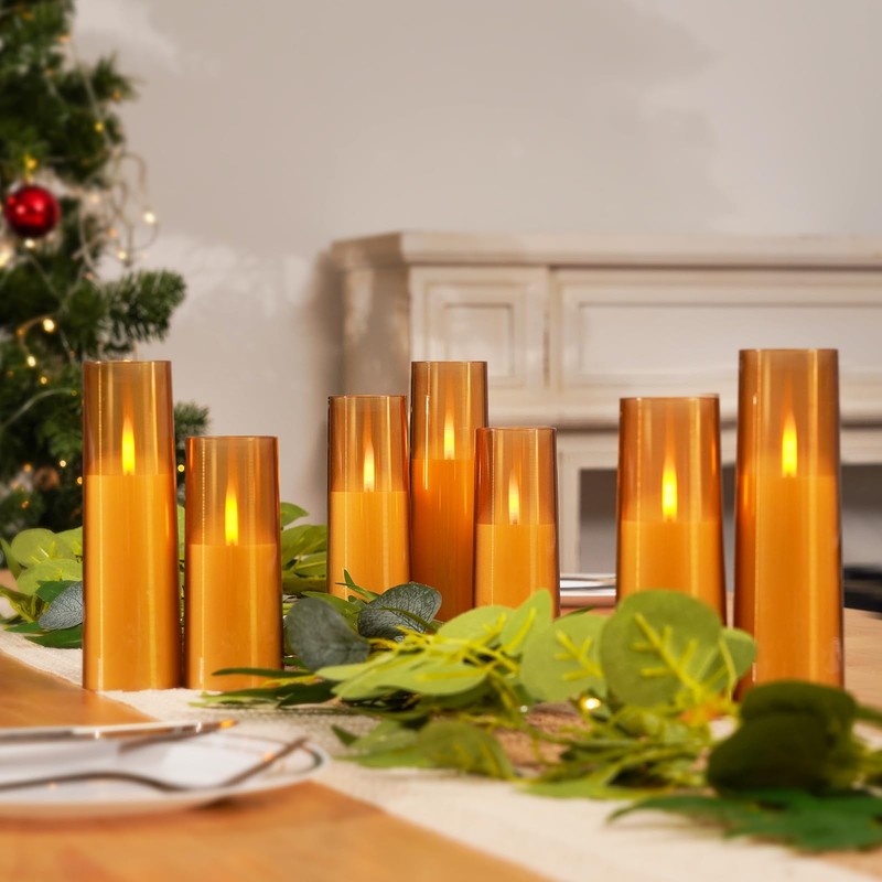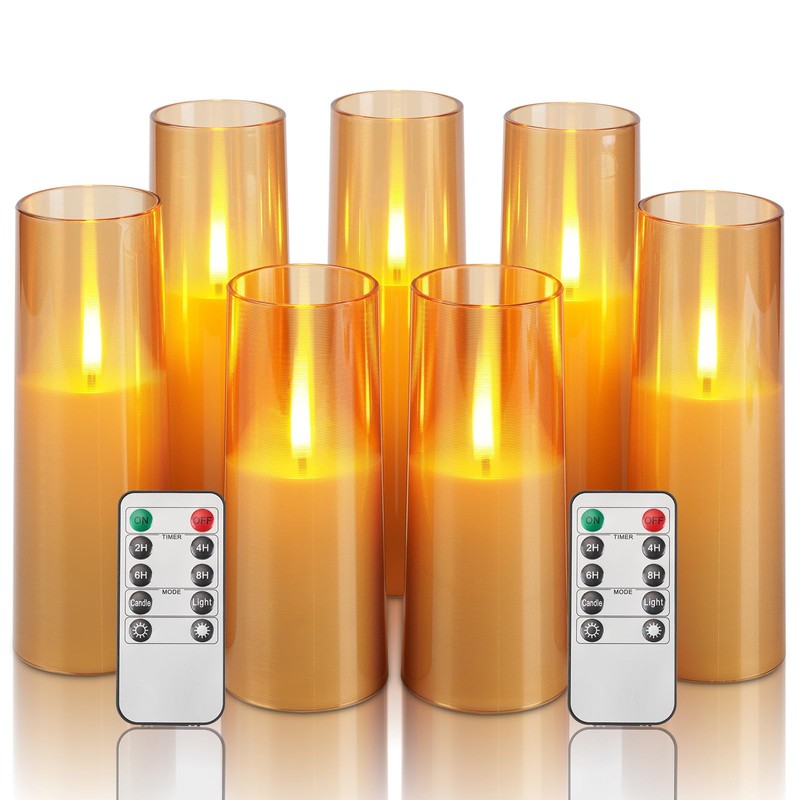 Homemory Amber Flameless Battery Operated LED Candles with Remote Control, Flickering Pillar Candles, 7-Piece Set for Multi-Use Decor, Timer Function Included