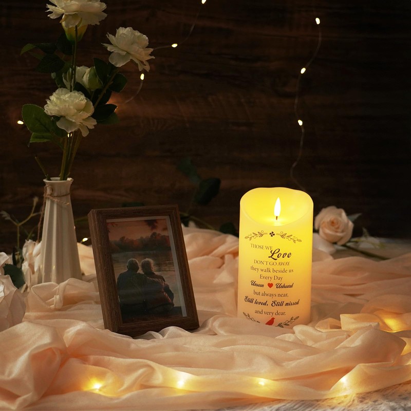 - 【Sympathy Candle】: Retaining the 3D wick design, the memorial candle glows comfortably when it is lit. Whether placed on a mantle, displayed at a gravesite, or used as a centerpiece during memorial services, the soft, warm light creates a serene ambiance that fosters reflection and healing.