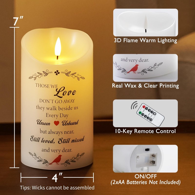 Homemory Memorial Candle Bereavement Sympathy Gifts for Loss of Loved One, Real Wax LED Candle with Remote Memorial Gifts for Loss of Mother Loss of Father in Memory of Loved One Remembrance Gift