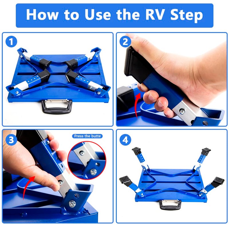 - Widely Used:The folding steps is different from another RV steps and more convenient than other RV steps. It is suitable for a variety of places.It can widely apply to RV, camping, library, kitchen, bed, office, retail store, library, truck and camper.