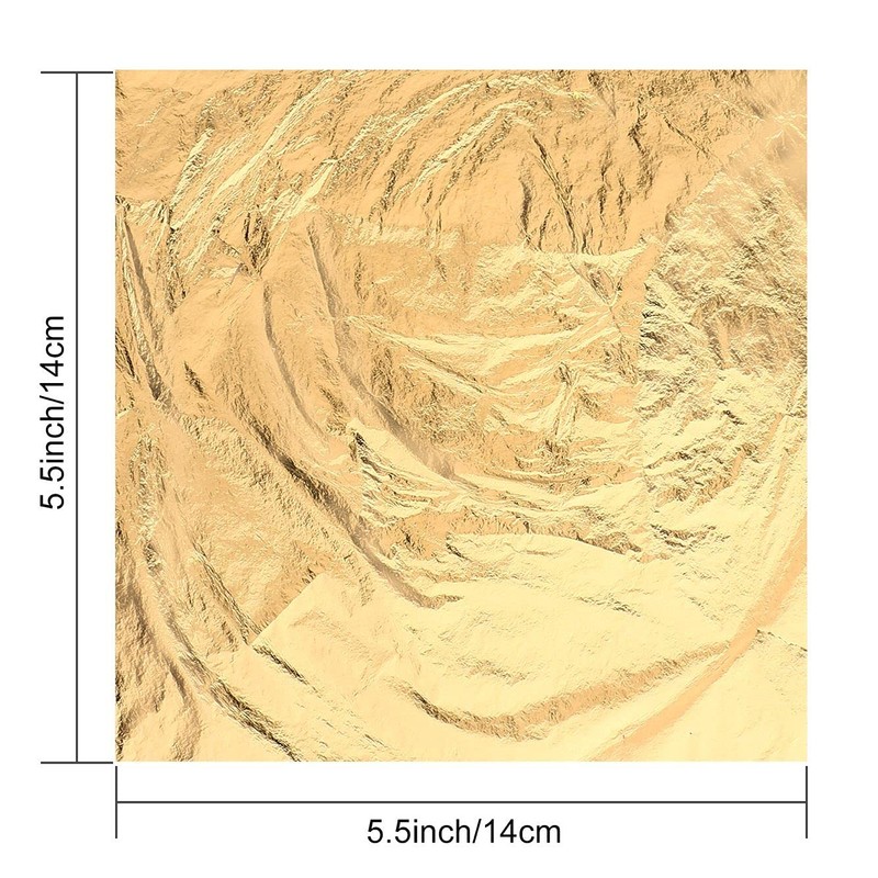 - SIZE & WIDE APPLICATION - Approx 5.5 by 5.5 inches (14 x 14 cm) , the gold leaves sheets can be used on various surfaces such as wood, ceramic, glass, metal, plastic, paper and ceiling, and they can be used on face and skin or for home decoration and art gilding.