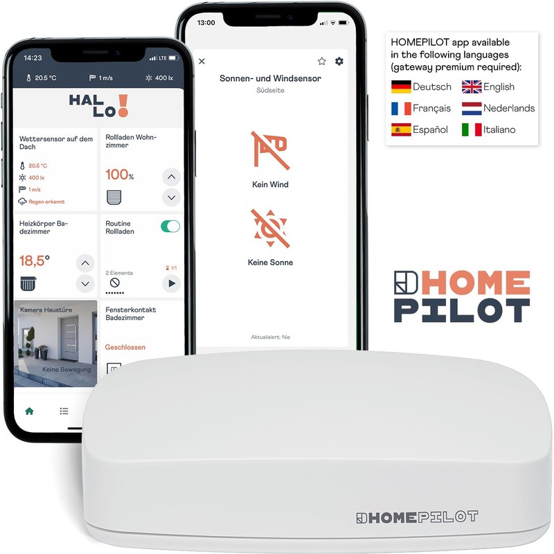 HOMEPILOT Smart Sun and Wind Sensor, Wireless Sensor with Solar Operation for Automatic Control of Roller Shutters, Awnings and Roman Blinds (Smart Home App via Gateway Premium Possible)