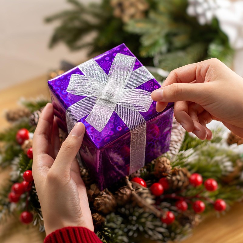 • HOLOGRAPHIC DESIGN: The purple holographic wrapping paper roll has special flower pattern, which will show the rainbow shine when you view it under light or from different angles