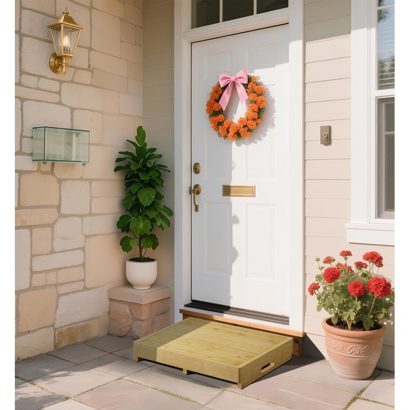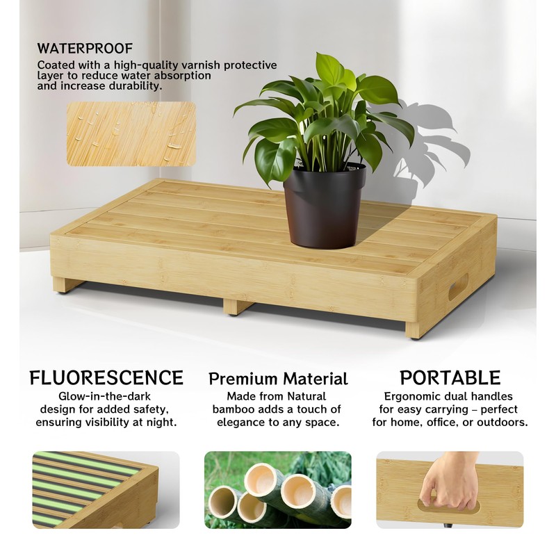 Homerays One Step Stool for Elderly,Bamboo High Riser Step Stool for Bed with Fluorescent Function No Assembly Required - 550 Lbs Wooden Mobility Stepping Stool for Bedside,Bathroom,Garden