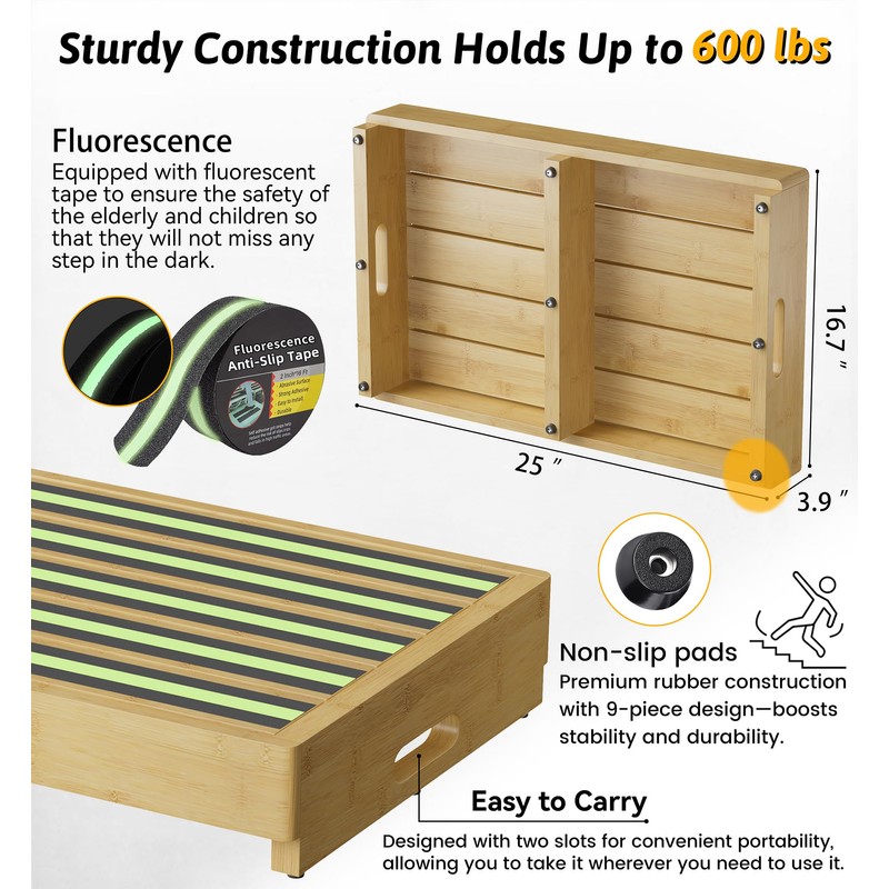 - 【SHOCK - ABSORBING FOOT PADS & COMFORT & STABILITY】Each rubber foot pad absorbs shock, reducing vibrations while walking and preventing floor damage. This enhances stability, making every step more comfortable and secure. It can withstand a weight of 550 pounds, and the quality workmanship ensures that the step stool remains sturdy and durable after long-term use