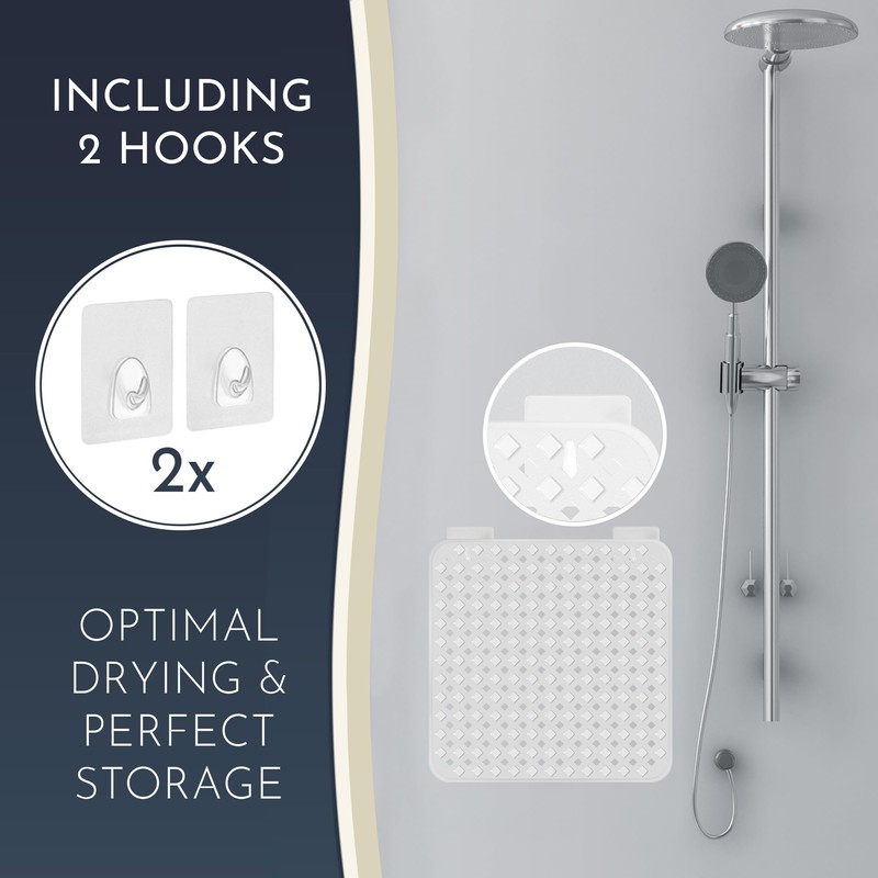- Easy to Dry - Includes Hooks - No more wet shower matts non slip anti on the edge of the bathtub! Thanks to the 2 self-adhesive hooks that can be removed without leaving any residue, the bath mats for shower can be dried perfectly invisible!