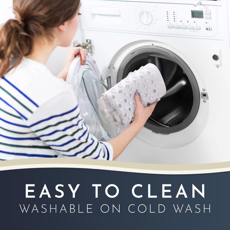 - Mold & Mildew? Not a Chance! Our shower non slip is machine washable on cold wash. The shower anti slip mat has extra large holes so the water can circulate & drain optimally - no matter where the drain is.