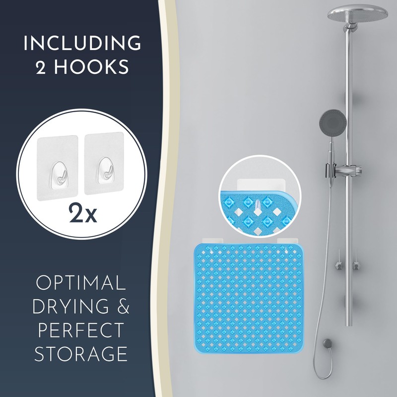 - Easy to Dry - Includes Hooks - No more wet shower matts non slip anti on the edge of the bathtub! Thanks to the 2 self-adhesive hooks that can be removed without leaving any residue, the bath mats for shower can be dried perfectly invisible!