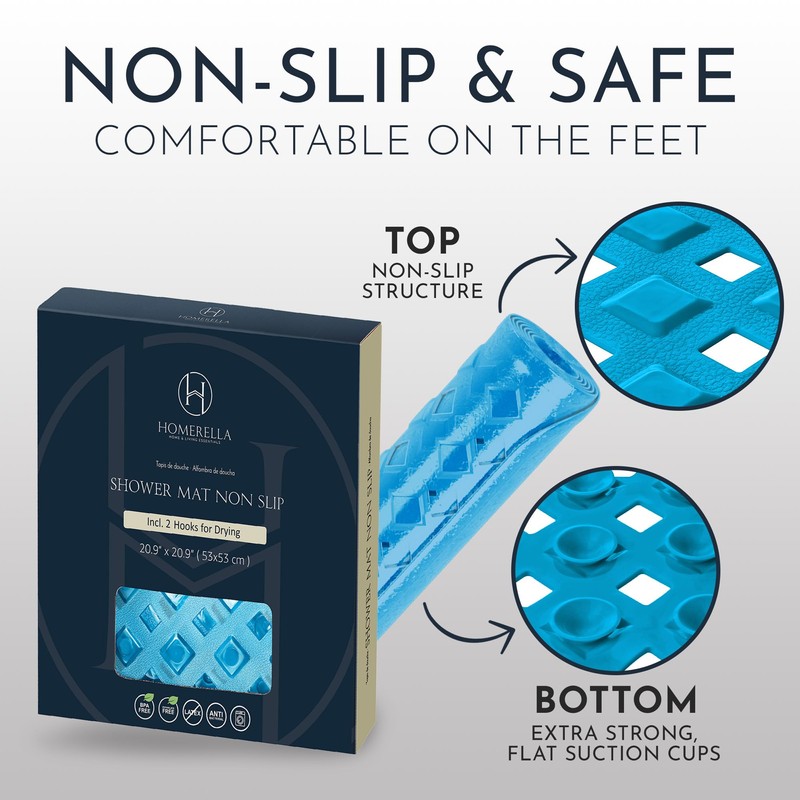 - Non-slip? Safe & Secure - The Homerella shower mat non slip anti square has over 250 anti-slip suction cups on the bottom for optimum grip. The top of the shower drying mat has a special anti-slip structure!