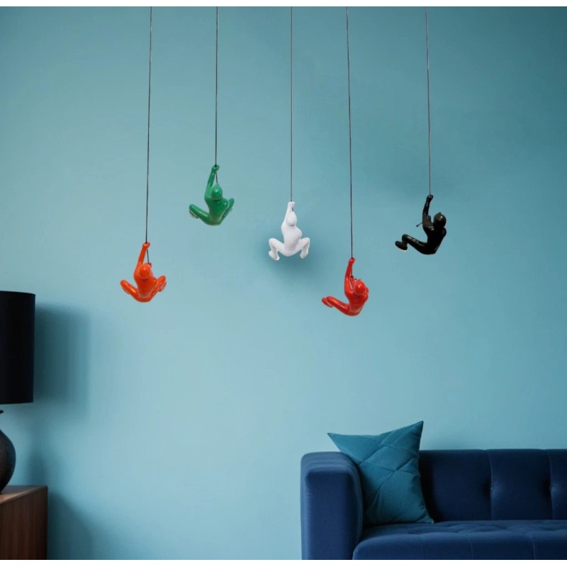 HomeRoots Set of Five Black Green Orange Red And White Resin Climbing Man Hanging Dimen...