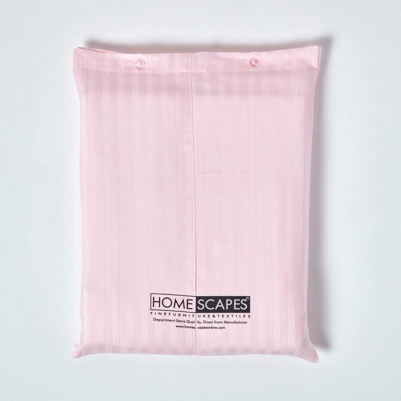 HOMESCAPES Pink Deep Fitted Sheet (12”) Single 330 TC 500 Thread Count Equivalent Satin Stripe Pure Egyptian Cotton Bed Sheet with Fully Elasticated Skirt