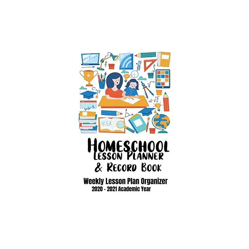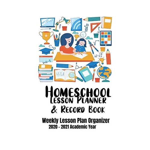 Homeschool Lesson Planner & Record Book: Organized Weekly Lesson Plans, 2020-2021 Academic Year for Elementary, Middle School or High School (School Room Items on White Design)