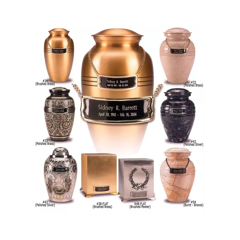 · Can it be Engraved? : Yes, with our solid brass engraved nameplate, that is sold separately. Check our store under the category "Engraved Name-Plates/Medallions." If you purchase a name-plate with this urn, I can offer a discounted rate for the personalized plate..