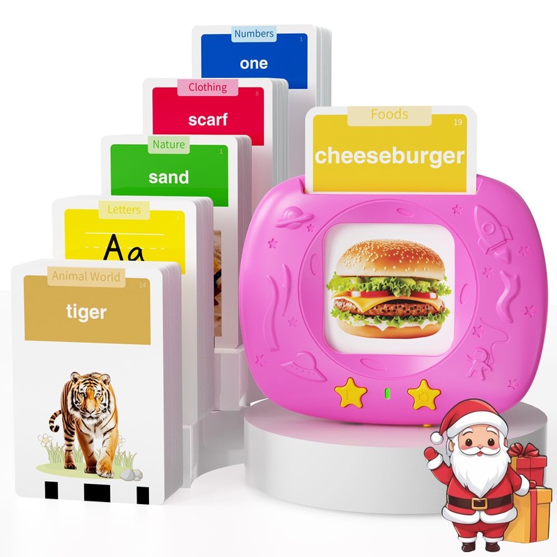 HOMESTEC Toddlers Speech Learning Toys, Upgraded Realistic Flash Cards, Sight Words with Sounds, British Accent, Educational Montessori Multi-Sensory Kit for Pre-school Kids Gifts (Space Pink)