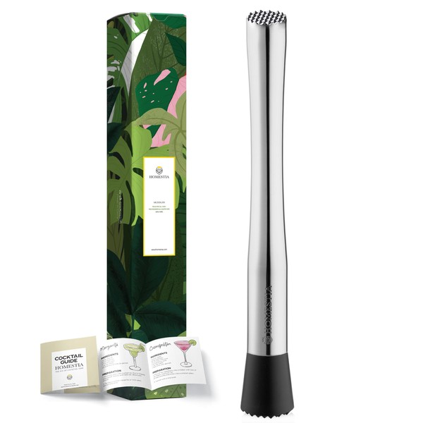Homestia 2 in 1 Muddler for Cocktails, 10 Inch Cocktail Muddler 304 Stainless Steel Fruit Smasher for Mojito and Fruit Drinks Bar Muddler for Home Bar Tool Set Silver