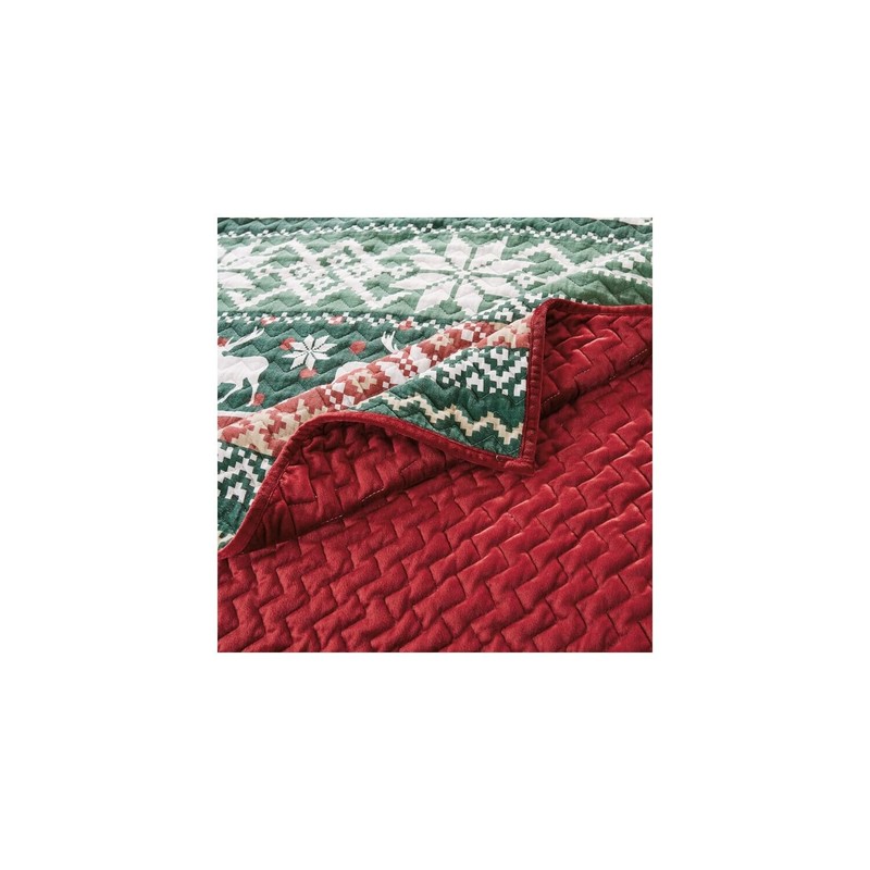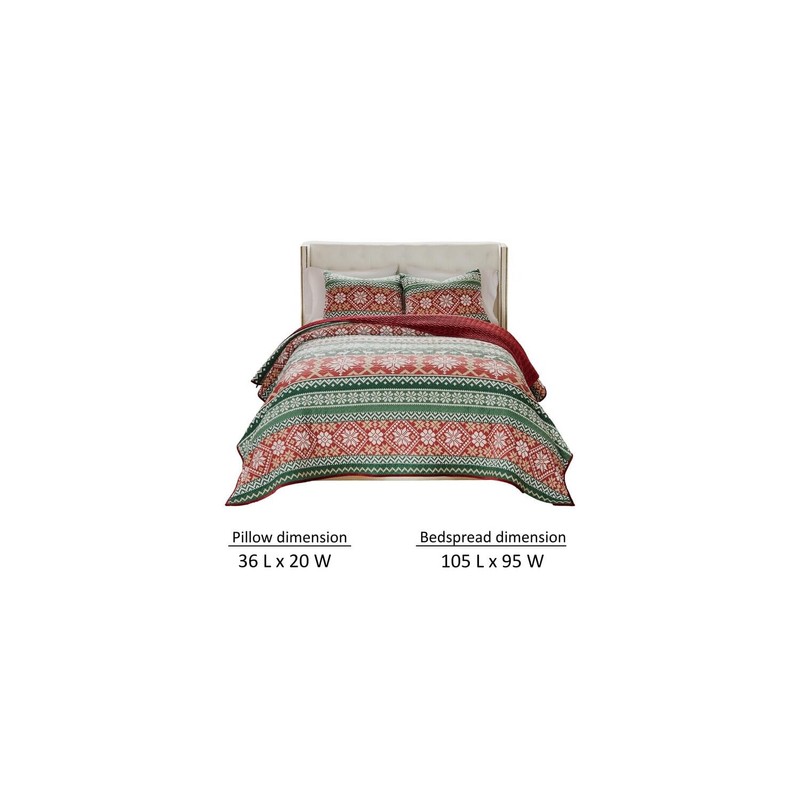 HomeStock Rustic Recluse 105" x 95" 3pc King Quilt Set Red Green Velvet Back with Christmas Pattern Reversible Velvet Underside for Cozy Comfort