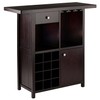 - Constructed from solid and composite wood with brushed silver accent knobs and a sleek cappuccino finish, this wine bar cabinet exudes quality and sophistication, ensuring durability and a timeless aesthetic that complements any decor, providing a long-lasting and stylish addition to your home.