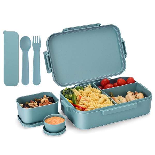 • ✅【BPA-Free Safe Materials】The lunch box and accessories are made made of natural organic wheat straw fiber, food-safe,100% BPA free, non-toxic, odorless and environmentally friendly. No harmful chemical materials.It's your ideal daily lunch containers!