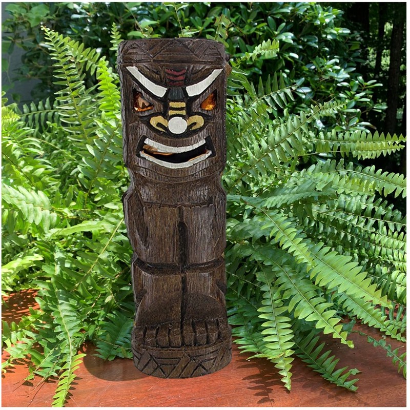 - 12 in tall Friki Tiki Painted Tribal Solar Table Decor