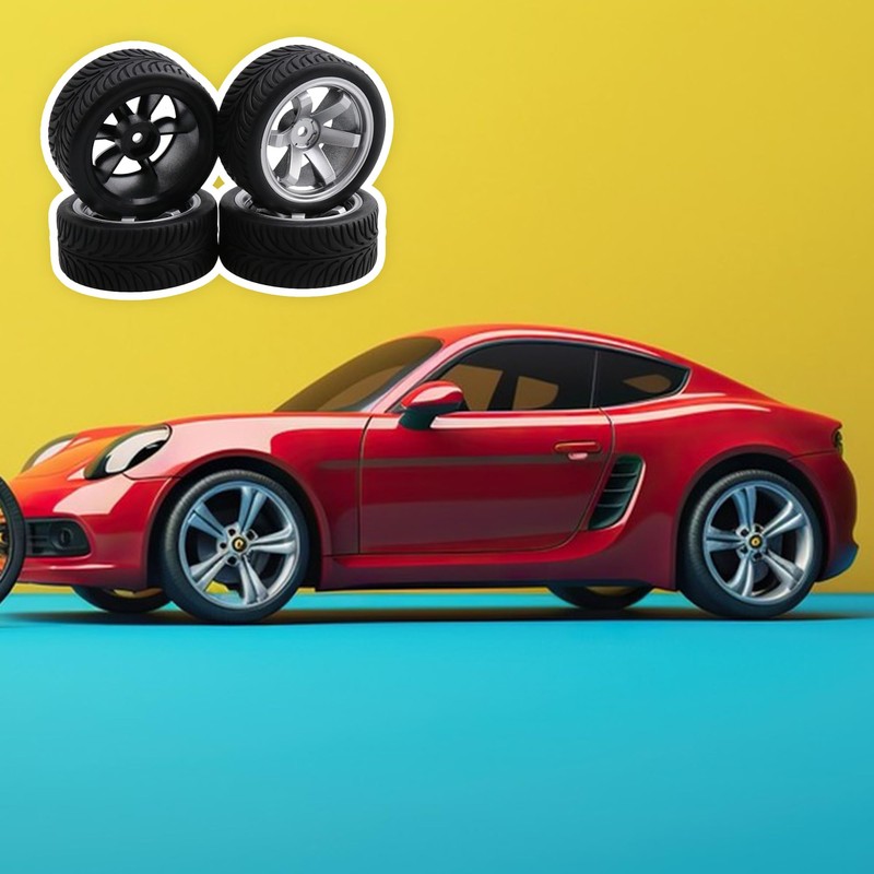 Homeswitch 4PCS RC Wheat Pattern Tire&6 Spoke Wheel Rim replacement for RC1:10 On Road Car Silver