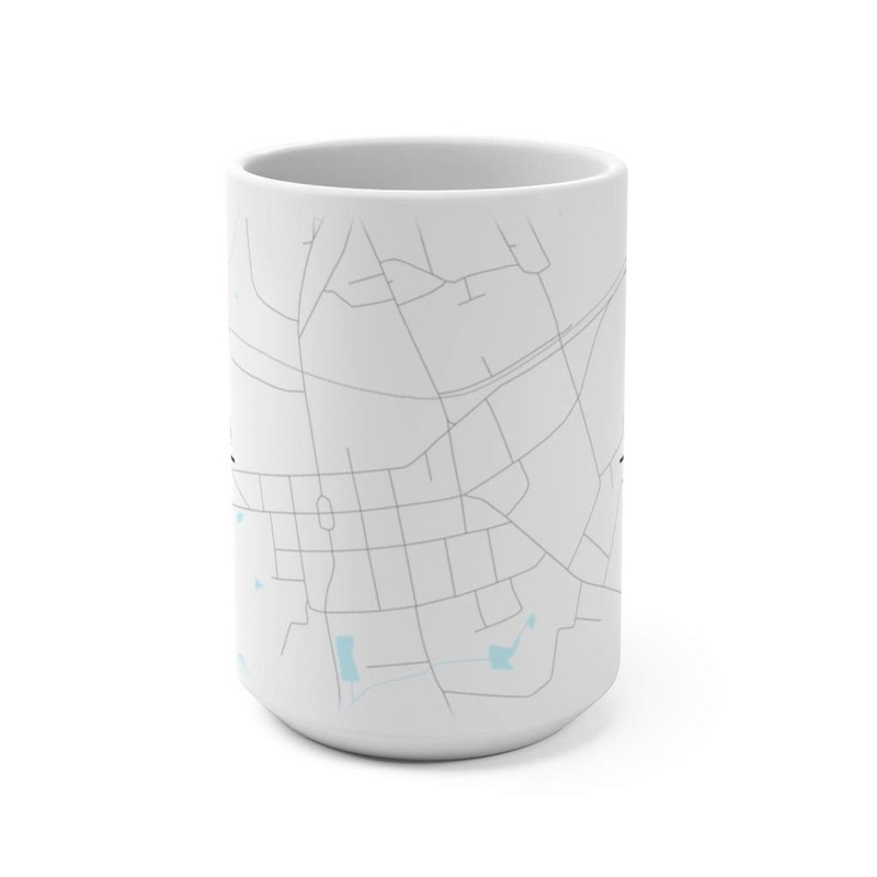 Our Hometown Bias Map Mugs are more than just a vessel for your favorite beverage. They are a celebration of your roots, a nod to the places that hold a special place in your heart. Each mug features a minimalist, wraparound map of a specific location, in this case, Sparta, Georgia. The map is styled with no street names or other labels, creating a unique fingerprint that will be instantly recognizable to anyone familiar with the area. The name of the location is proudly displayed on both the front and back of the mug, making it a great conversation starter.