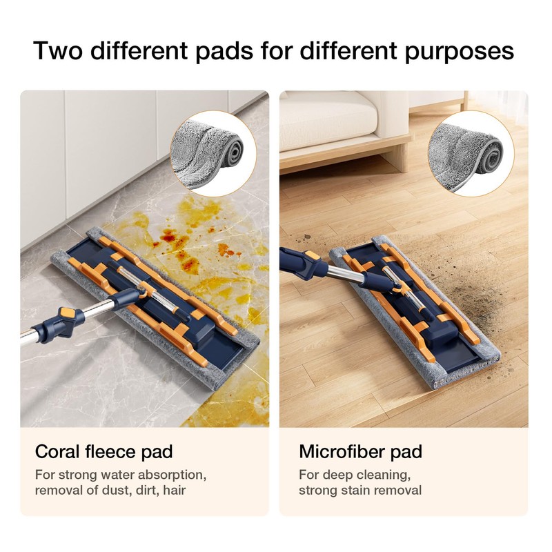 - Double-Sided Microfiber Pads with Dirt Scraper: Comes with 4 reusable, double-sided padsthe chenille side is ideal for dry dusting, while the microfiber side offers deep cleaning, making it a versatile mop for various surfaces. A dirt scraper is also included, allowing you to tackle stubborn grime with ease.