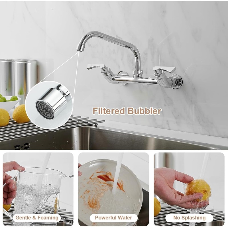 - 【Adjustable Wall Mount Faucet】8" adjustable center distance (available for hole distance:7.75"-8.25"),Kitchen sink faucet is designed to fit 2-hole,wall-mounted configurations,the package included all mounting hardware,you may install this kitchen faucet less than 15 minutes following the manual