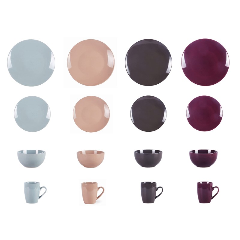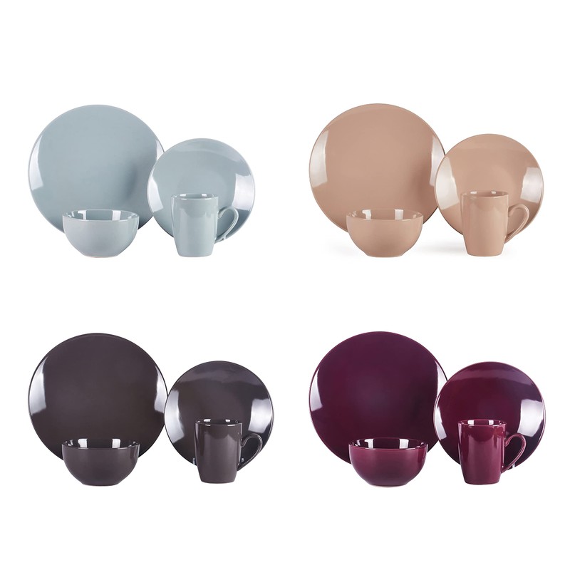 - Service for 4: 16pc Dinnerware Set including 4 of Each Dinner Plate 10.5", Salad Plate 8", Soup/Cereal Deep Bowl 5.5", Mug 13oz