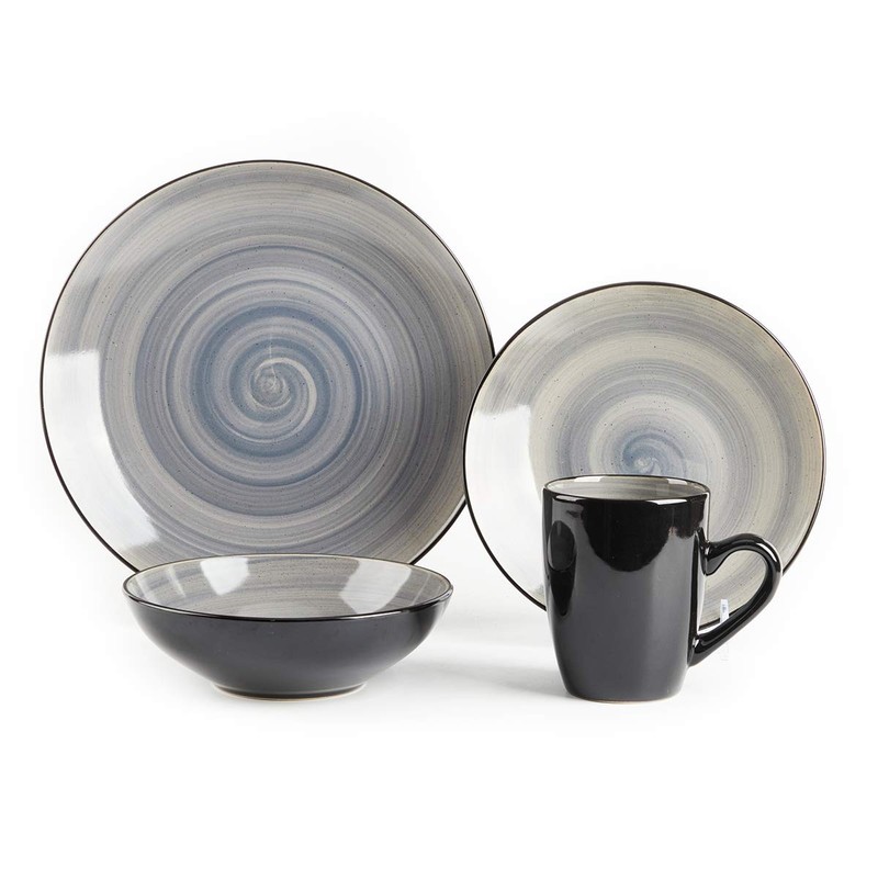 HomeVss, Stoneware Sonoma 16pc Dinnerware Set, Black + Speckled Spin Wash Mix...
