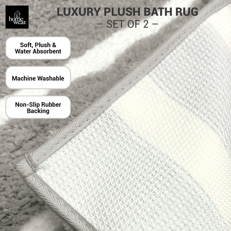 Homewear 2-Piece Stripe Bathroom Rug Set, Soft Plush Bath Mats, Non-Slip, Wat...