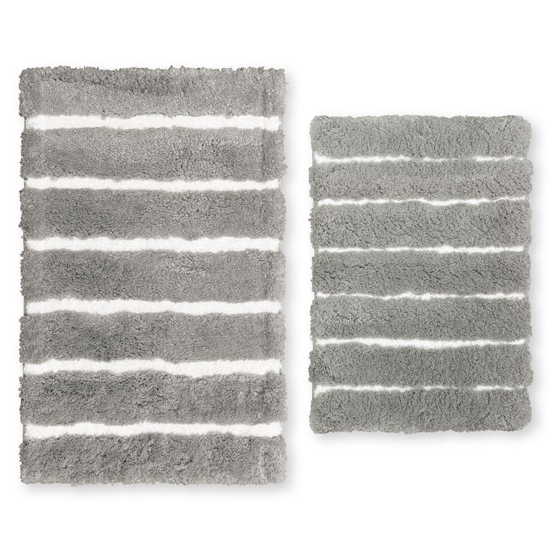 Homewear 2-Piece Stripe Bathroom Rug Set, Soft Plush Bath Mats, Non-Slip, Water Absorbent, Machine Washable, Bathroom Decor, 20"x32" + 17"x24", Silver/Pure White