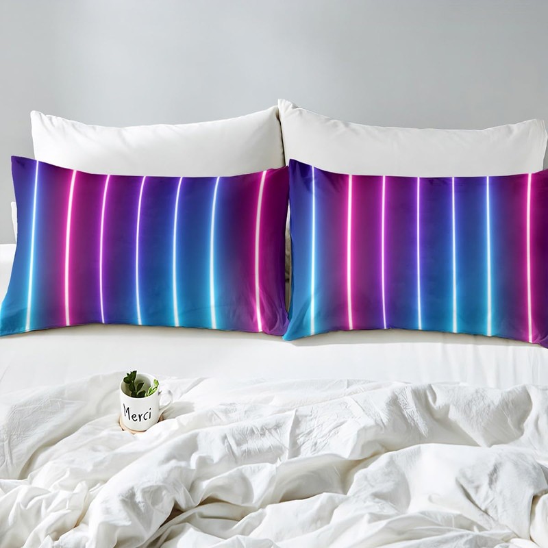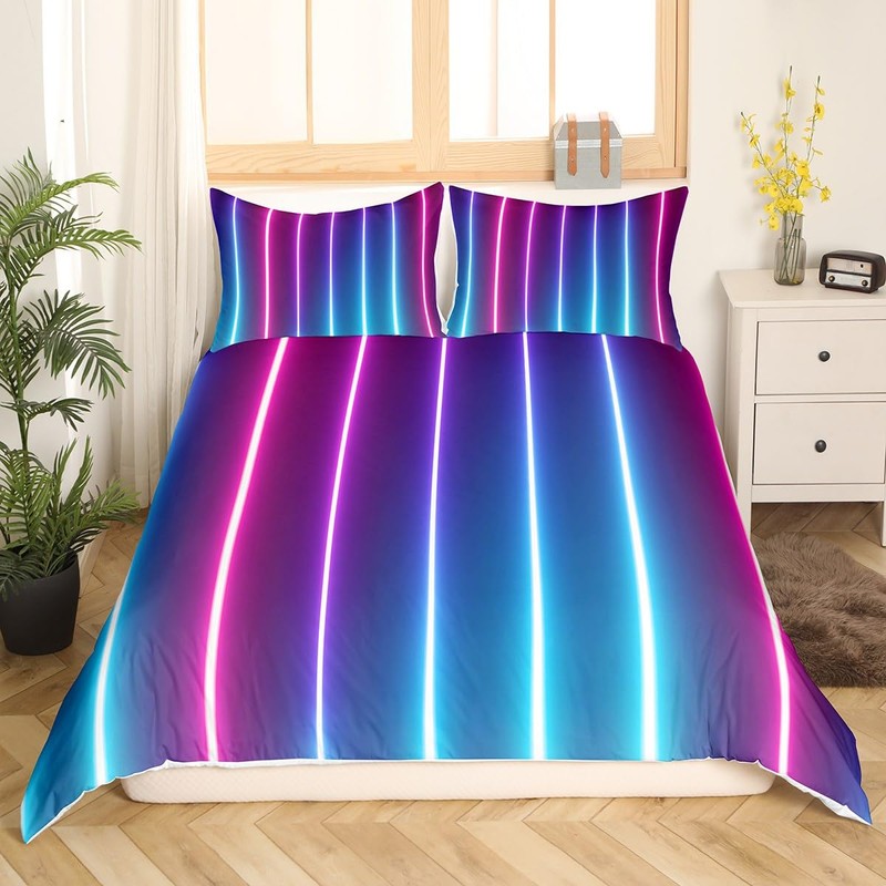 Homewish Abstract Ombre Duvet Cover Single,Pink Blue Teal Neon Bedding Set Geometric Stripes Comforter Cover for Boys Girls Kids Adult,Gradient Striped Quilt Cover Bedroom Decor 2Pcs