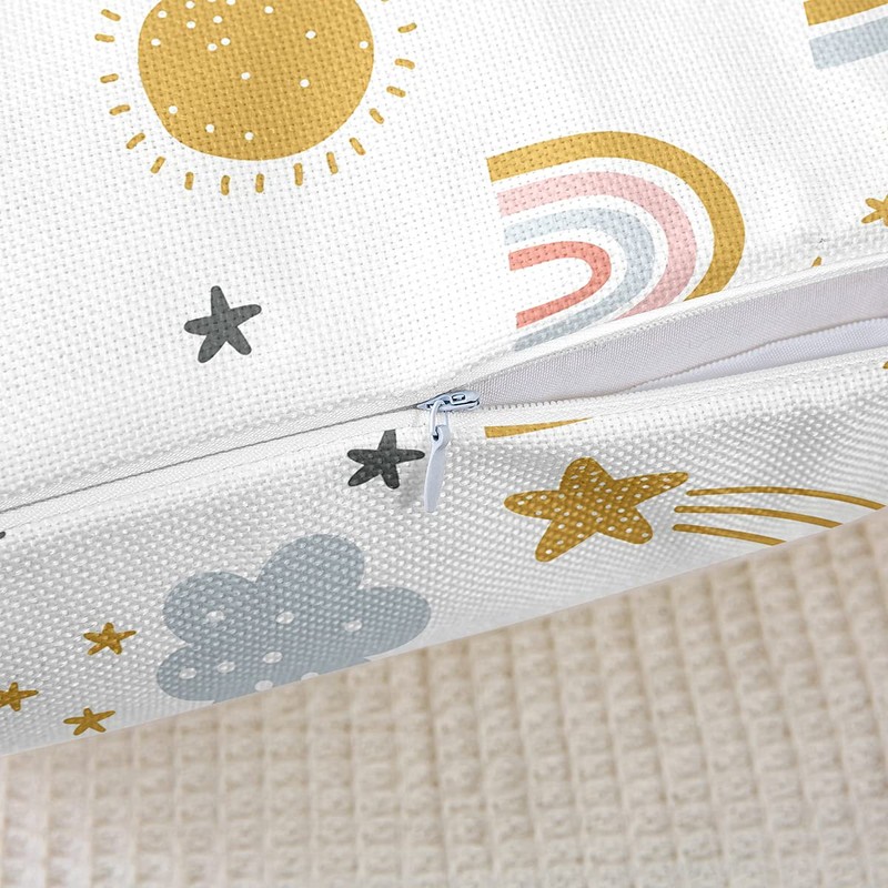 Homewish Girls' Rainbow Cushion Covers 50 x 50 cm - Sun and Stars for Children Boys - Cartoon Cloud Girly Soft Living Room Decorative Square Cushions, Yellow Pink
