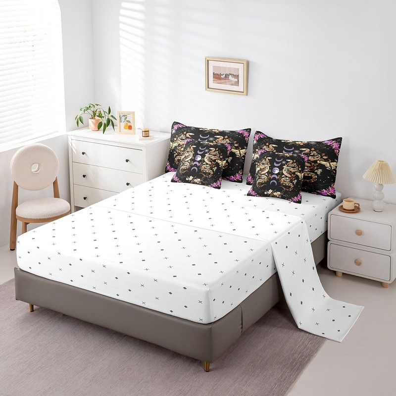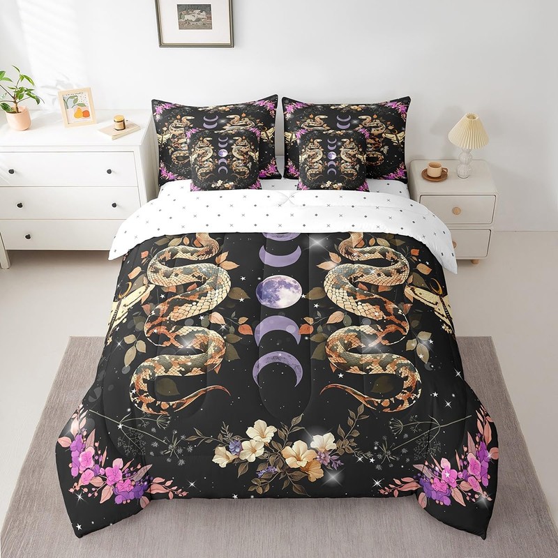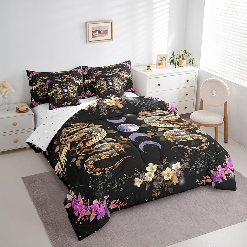 Homewish Gothic Snake Moth Kids Comforter Set 7 Piece Queen Size,Purple Moon ...
