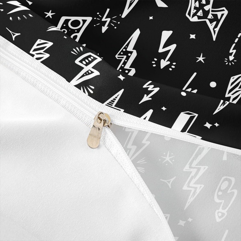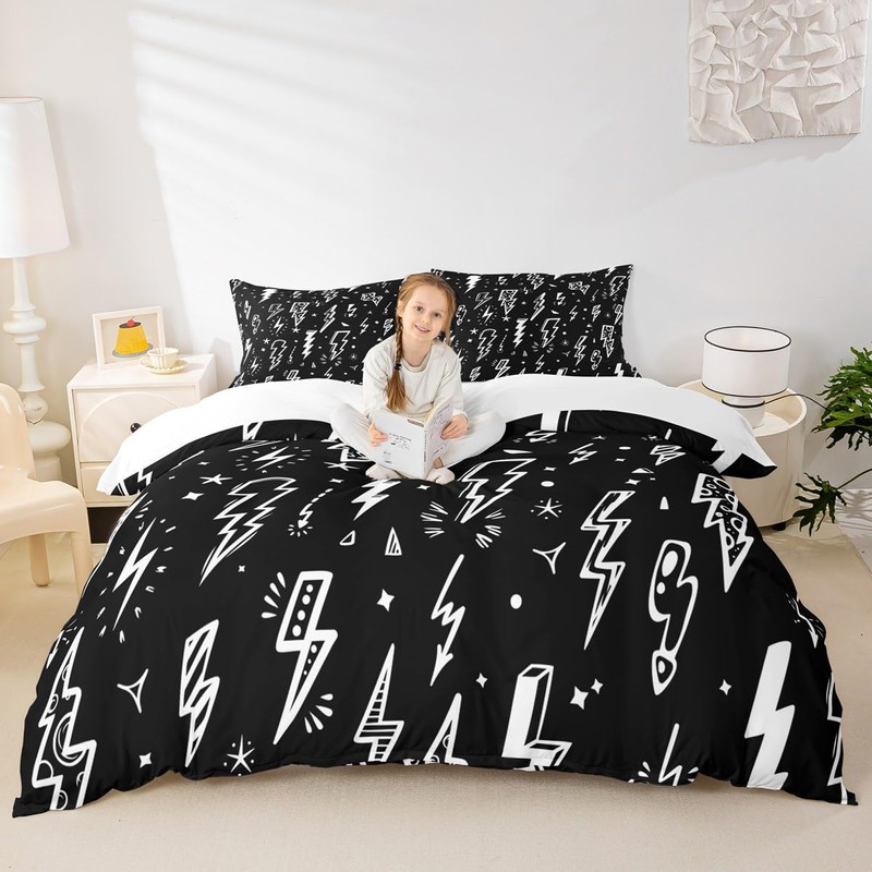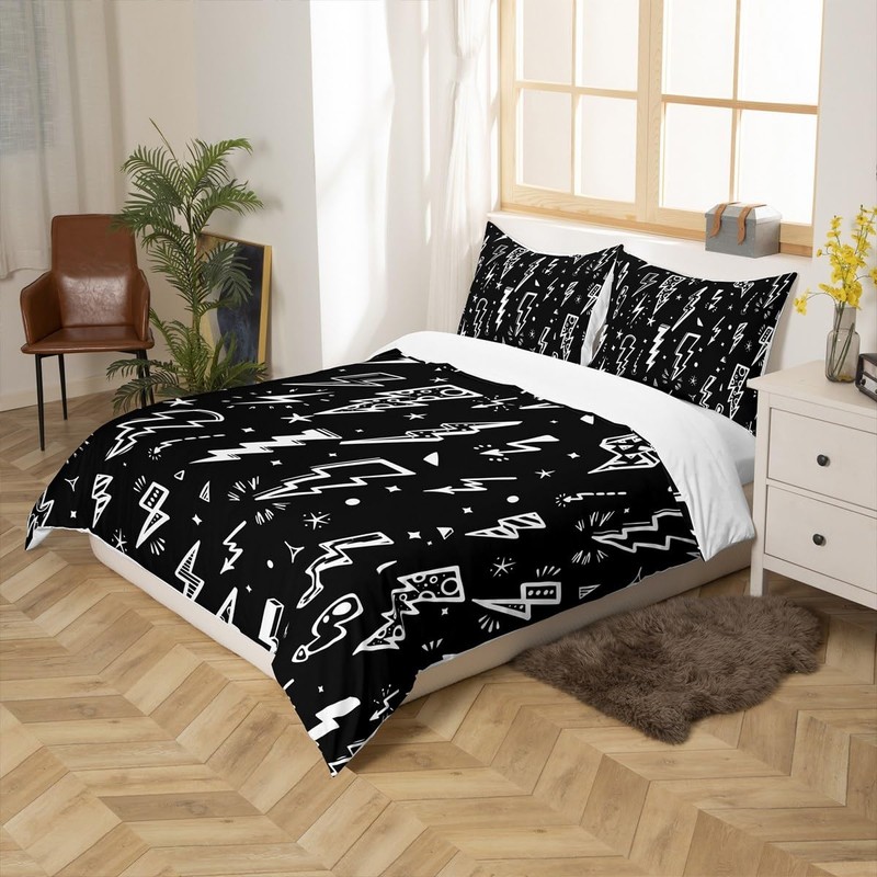 Homewish Lightning Duvet Cover Set Hand Drawn Doodle Lightning Bolt Bedding S...