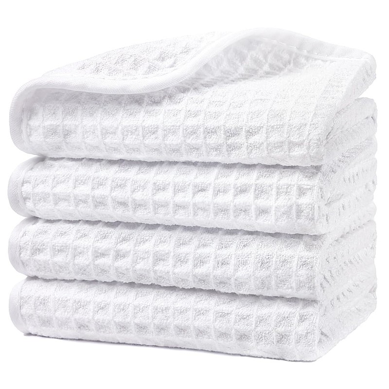HOMEXCEL White Waffle Washcloths 4 Pack, Microfiber Face Towels for Bathroom, Lint Free, Highly Absorbent and Quick Dry Wash Cloths for Bathroom, Hotel, Spa, Gym, and Kitchen, Face Cloth, 12x12 Inch